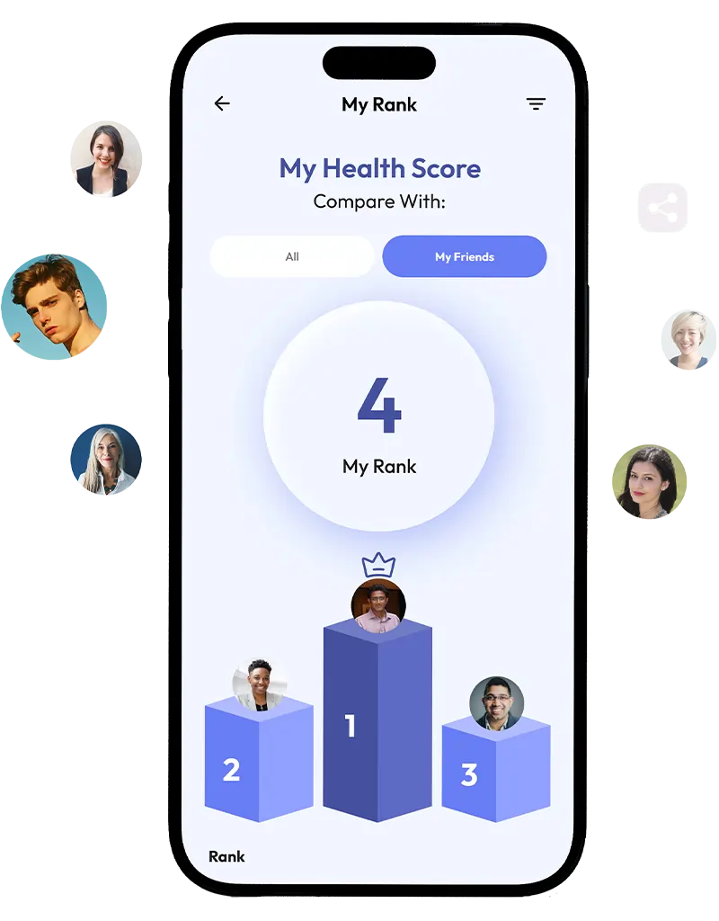 Compare your Holistic Health Score rankings with friends. Create custom groups with family members, friends, or colleagues to focus your comparisons and foster friendly competition.